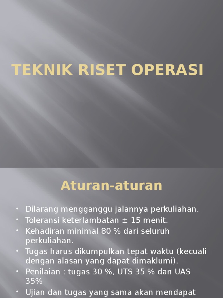 Riset operasi adbi4530. Analisis kuantitatif dan sistematik tetap dibutuhkan sebagai dasar argumentasi yang dapat dipertanggungjawabkan secara rasional.