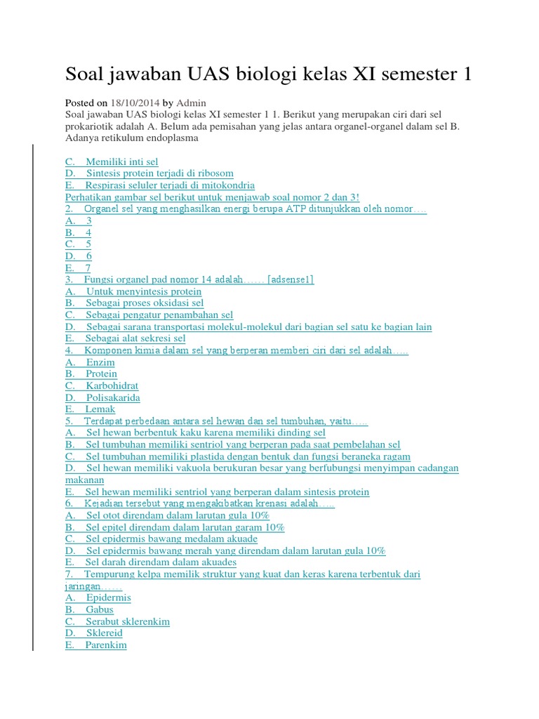 Jawaban soal biologi kelas 11 semester 1. System indera isian. Selamat datang di bank soal biologi nya pak ansori sma negeri 2 semarang. Deskripsi soal un 2013.