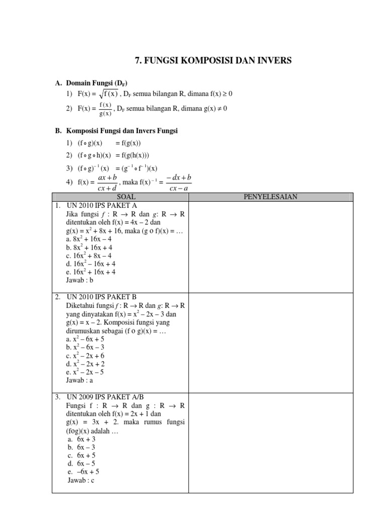 Untuk menjawab soal soal tentang fungsi komposisi dan invers fungsi. Soal dan jawaban fungsi komposisi dan invers.